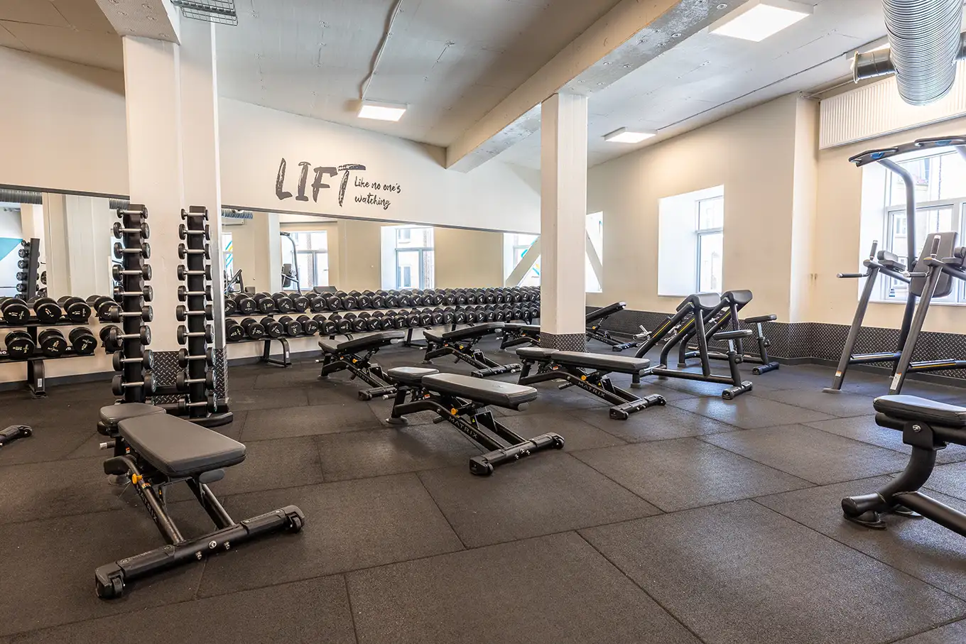 Vi har god plads til vores medlemmer. I vores app kan du se, hvornår der er flest og færrest mennesker i centret.