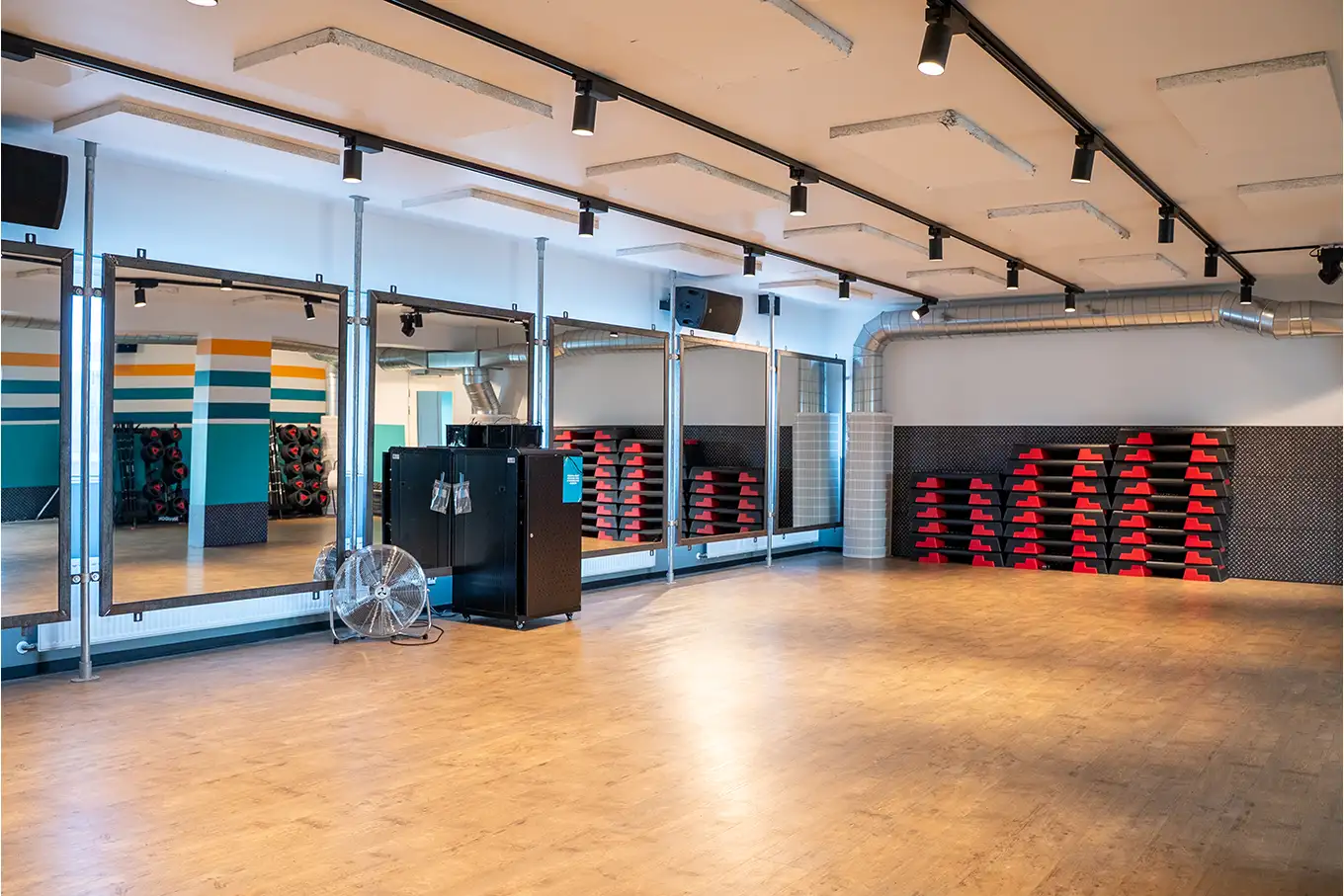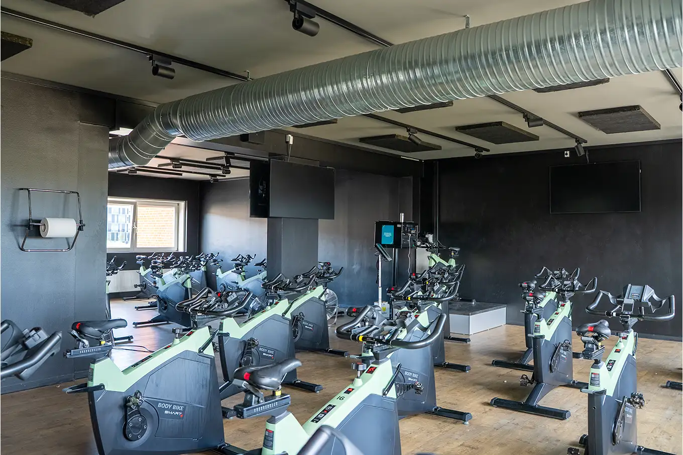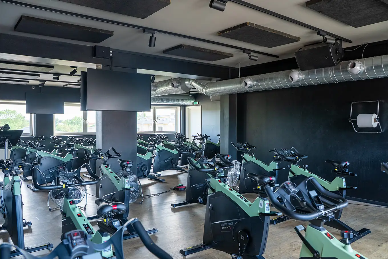 Vi har en holdsal og en bikesal, hvor der tilbydes alt fra Stram op, Jam og Yoga til Bike og Boksning.