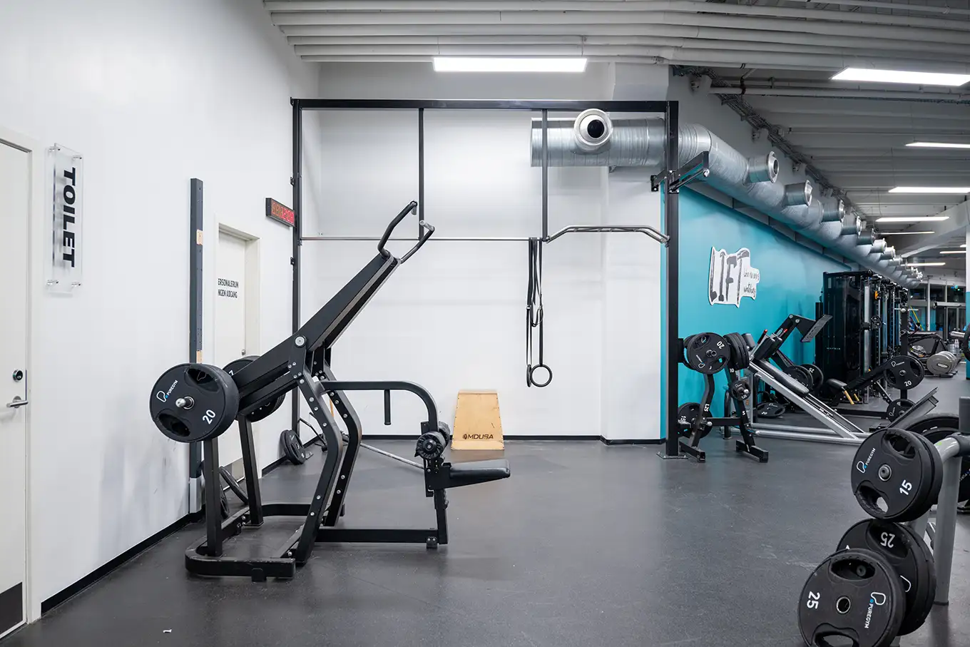 Vi har masser af udstyr til din styrketræning, så du kan lave alle de styrkeøvelser du kunne tænke dig. Vi har maskiner til træning af ryg, arme, mave, lår, bagdel, skuldre, bryst osv. Du kan derved træne dine muskelgrupper på flere måder og skifte imellem maskiner og finde de maskiner og øvelser, du bedst kan lide og får mest ud af.