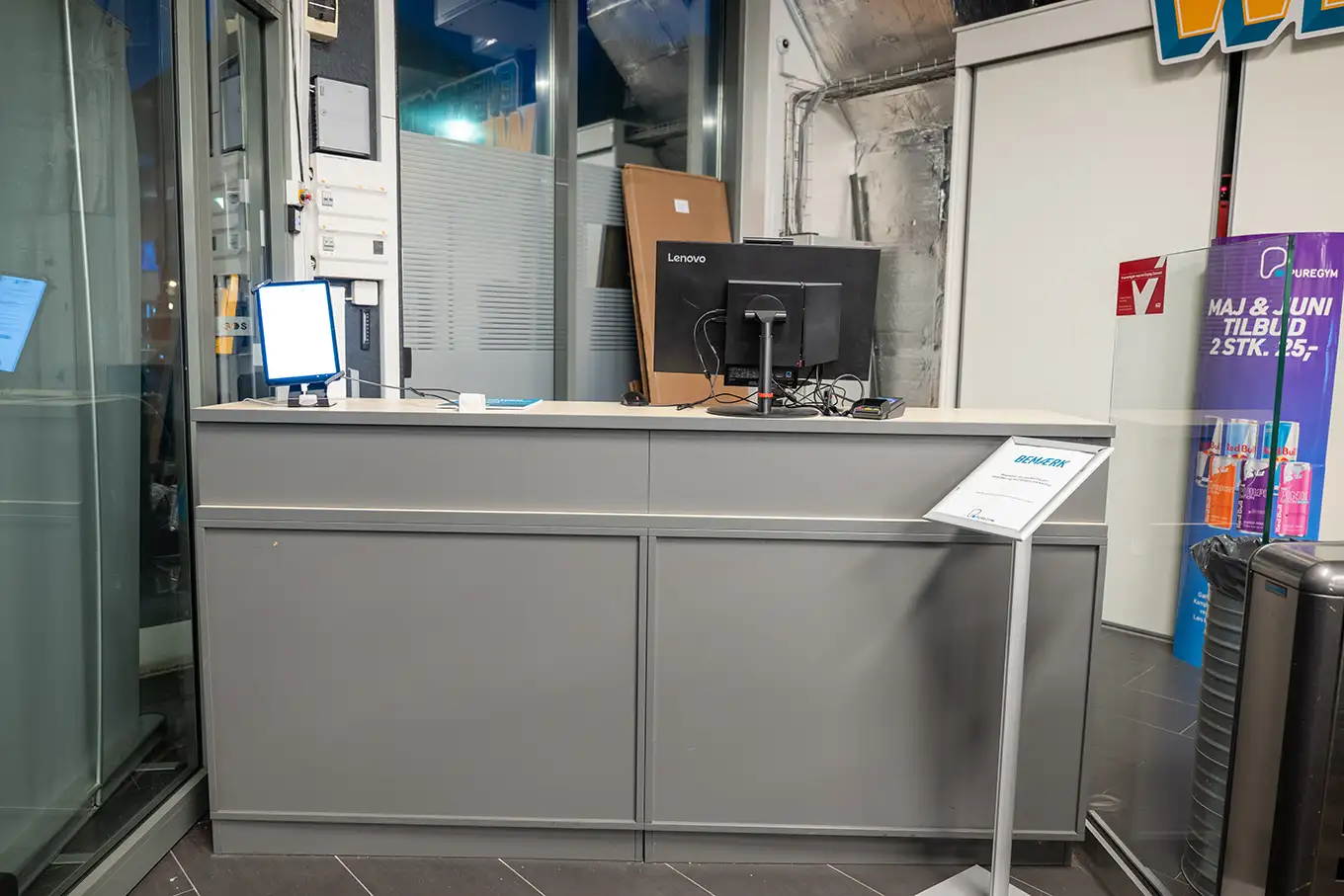 Ved indgangen ligger receptionen, hvor vi står klar til at tage imod jer. Hvis ikke vi er der, så ring endelig på klokken, så kommer vi susende. Se vores bemandingstider i oversigten her på siden.