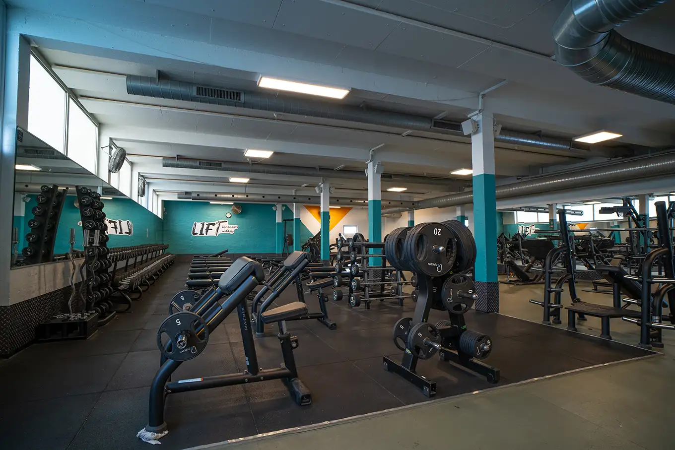 Vi har god plads til vores medlemmer. I vores app kan du se, hvornår der er flest og færrest mennesker i centret.