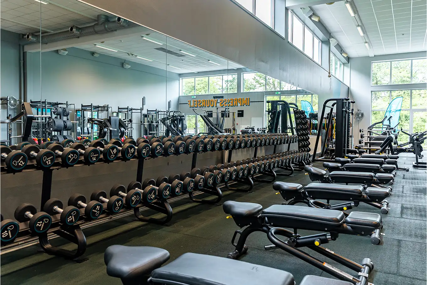 - Nyt og forbedret frivægtsområde, inkl. nye platforme, squat racks, vægtskiver, håndvægte og maskiner, heunder glute trainer og hacksquat