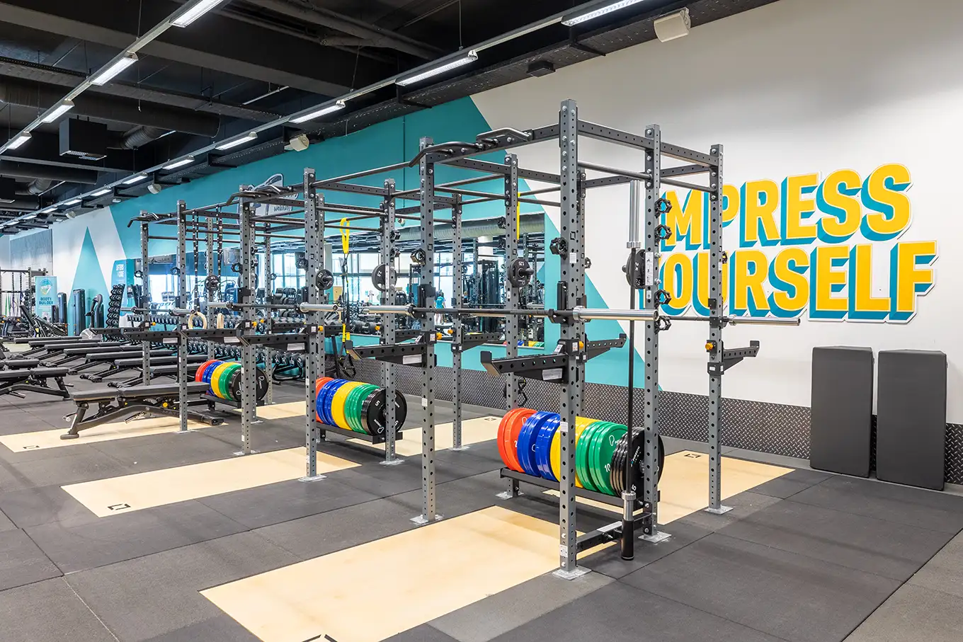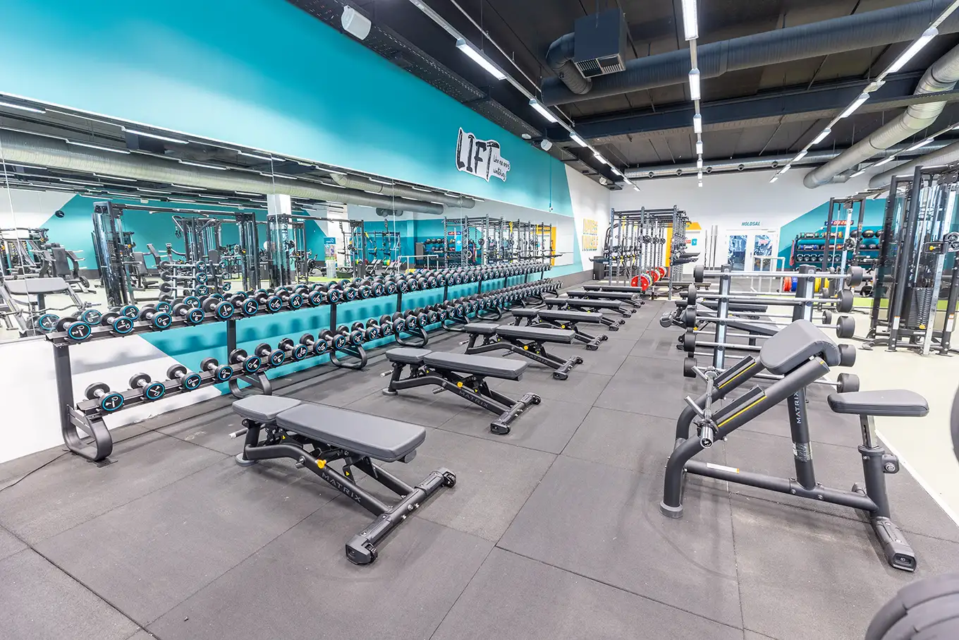 • Nyt og forbedret frivægtsområde, inkl. nye platforme, vægtskiver, håndvægte og nye maskiner som Perfect Squat, Glutebuilder og Hacksquat