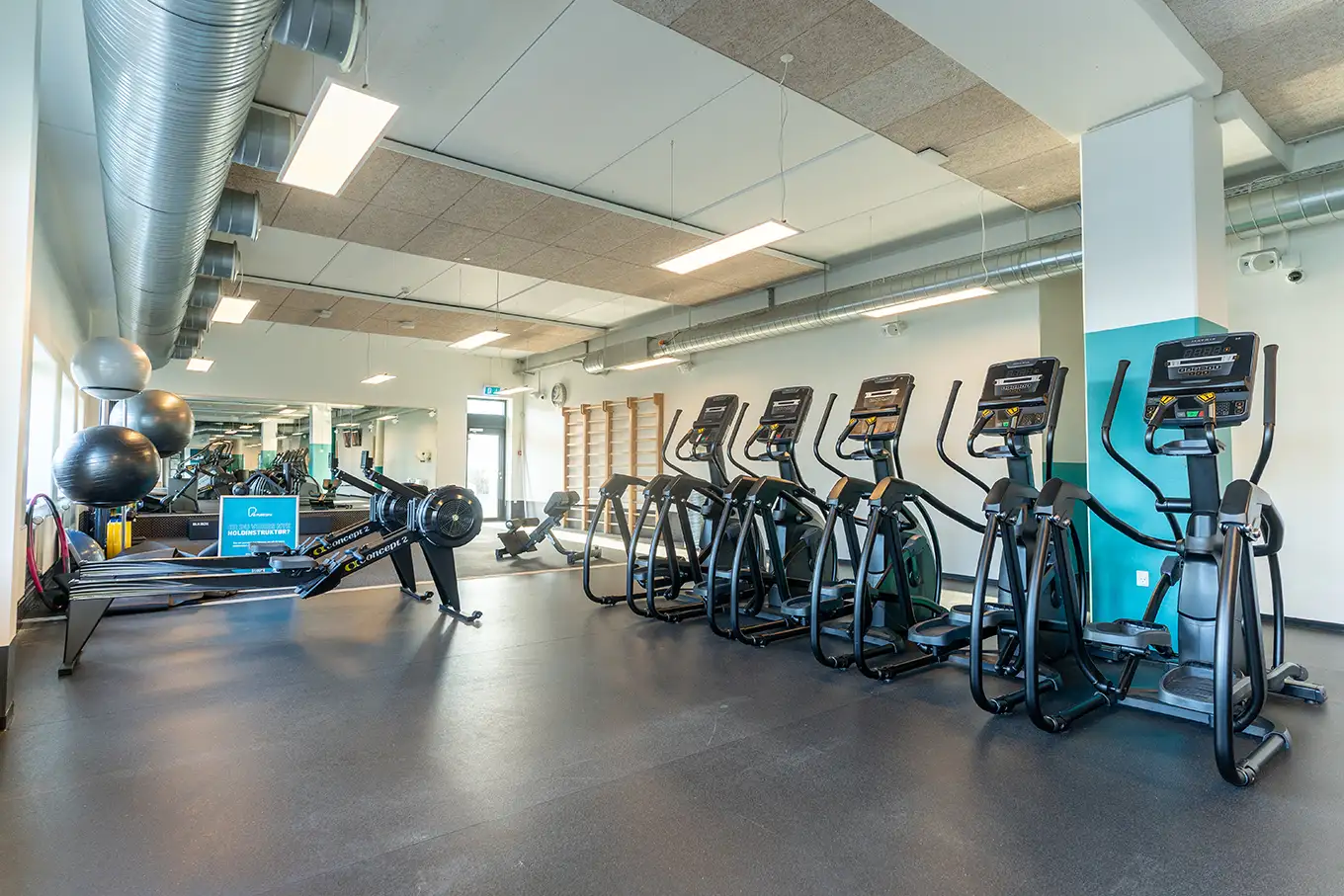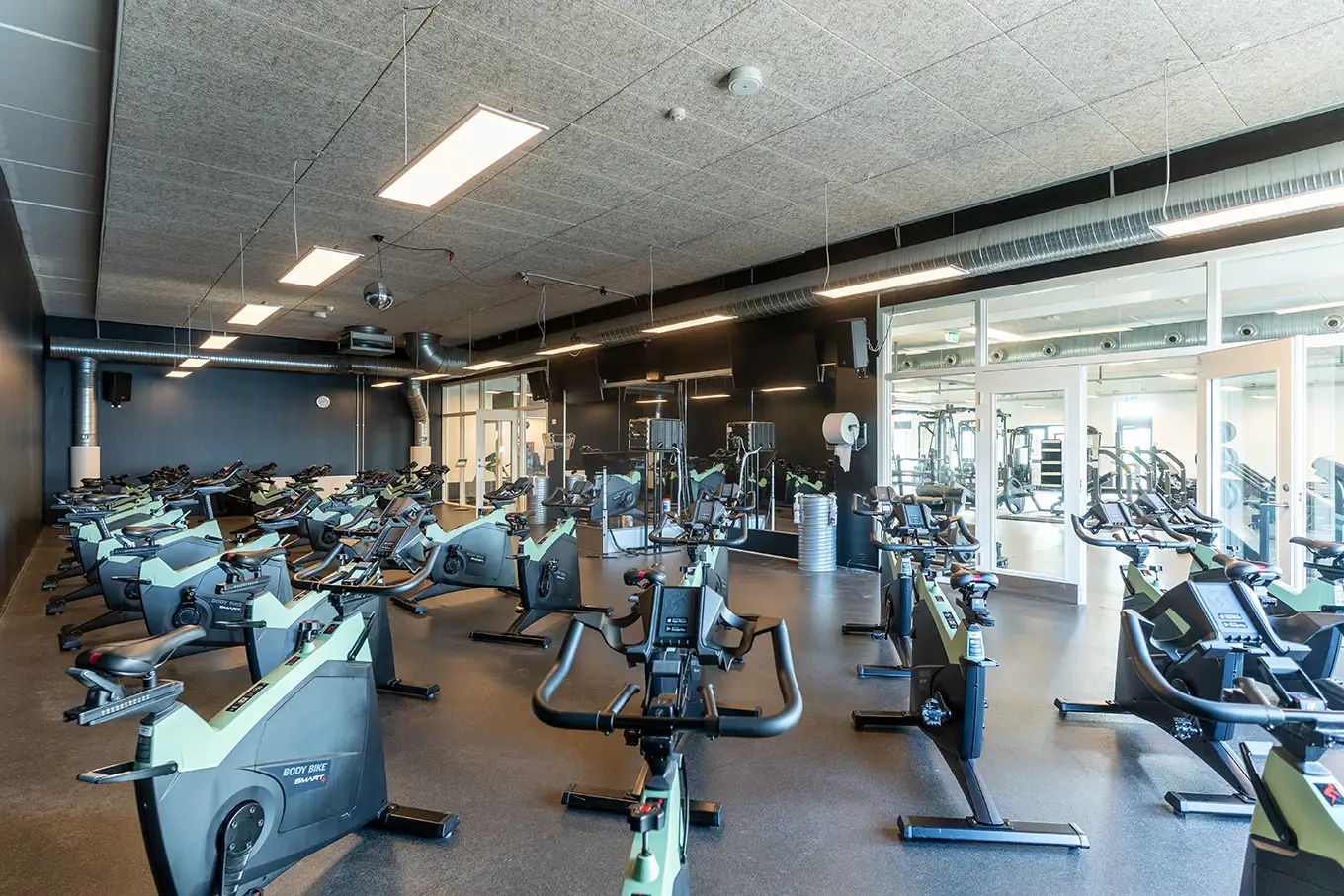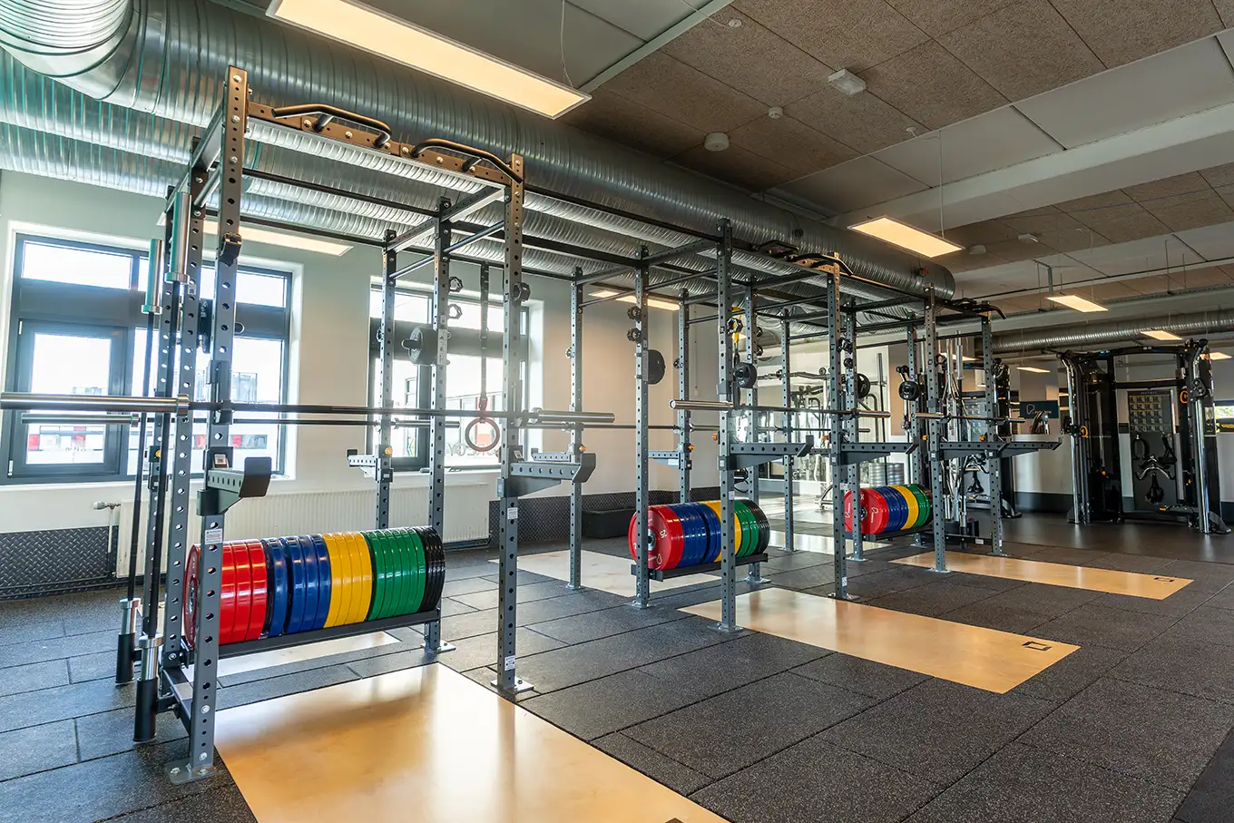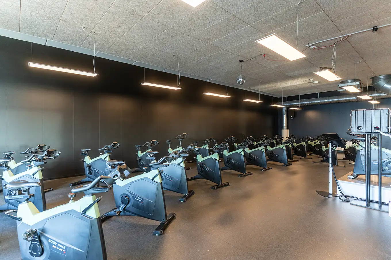 Vi tilbyder både fitness, styrke og konditionsfacaliteter, et funktionelt område, en stor holdsal med og en bikesal.