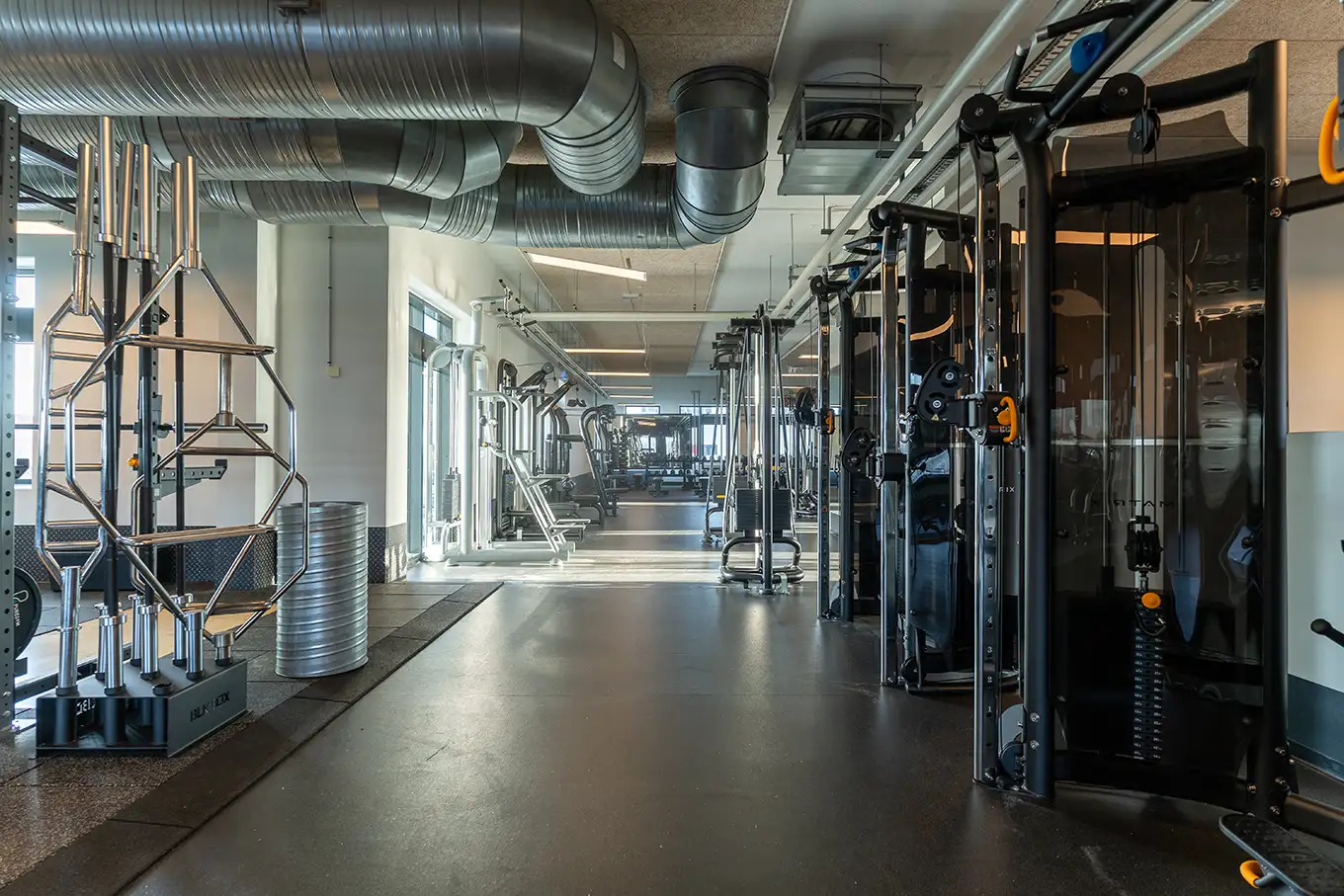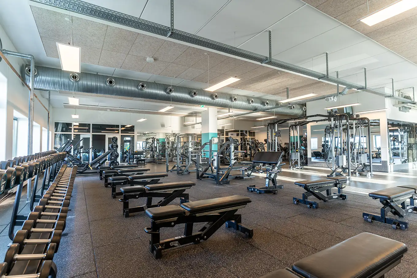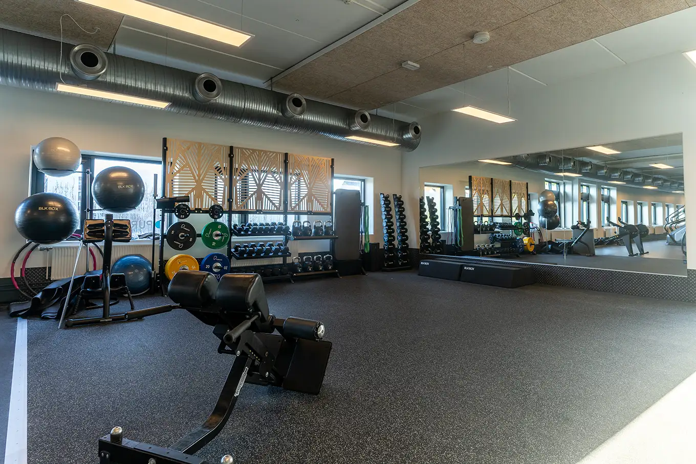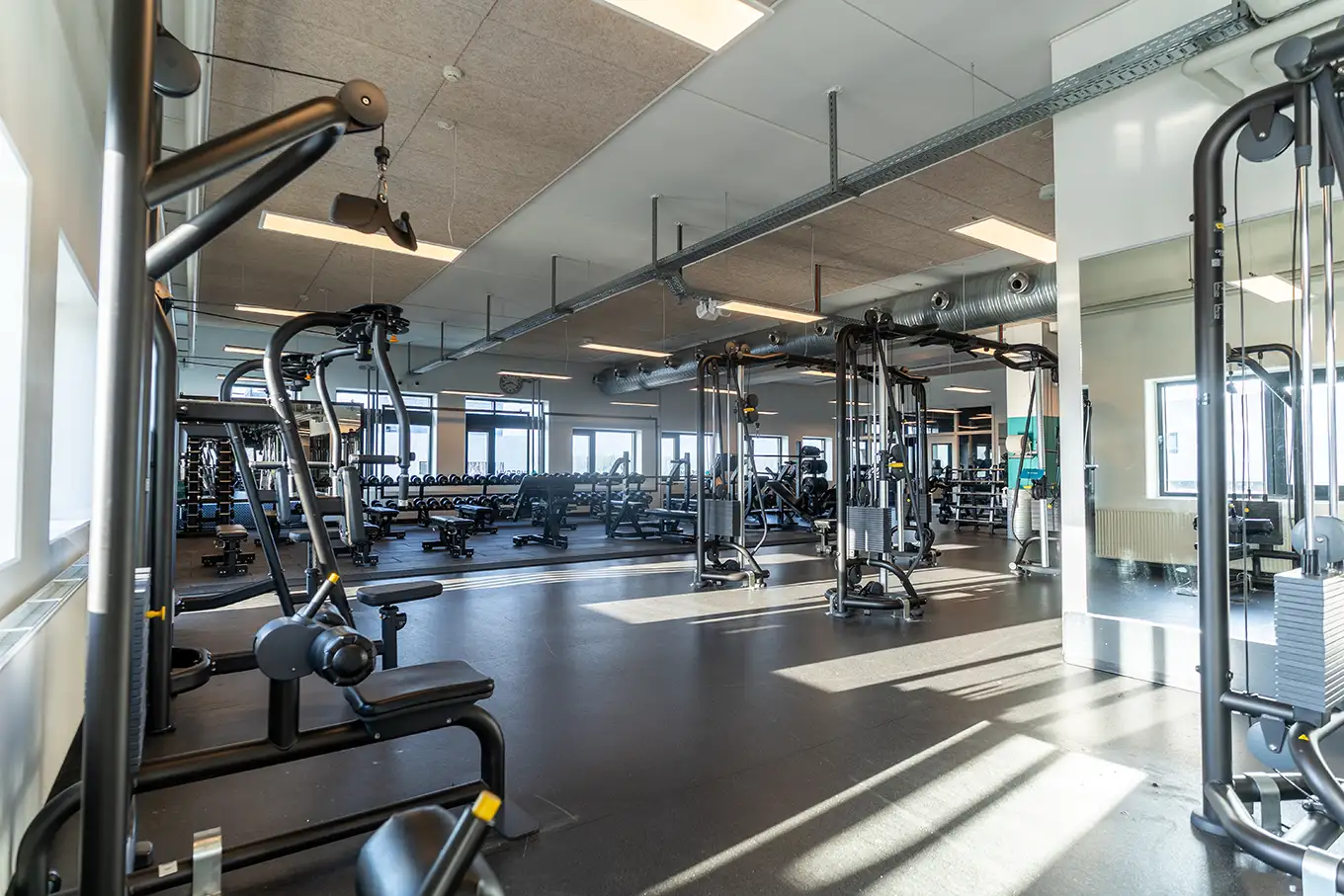 Vi tilbyder både fitness, styrke og konditionsfacaliteter, et funktionelt område, en stor holdsal med og en bikesal.