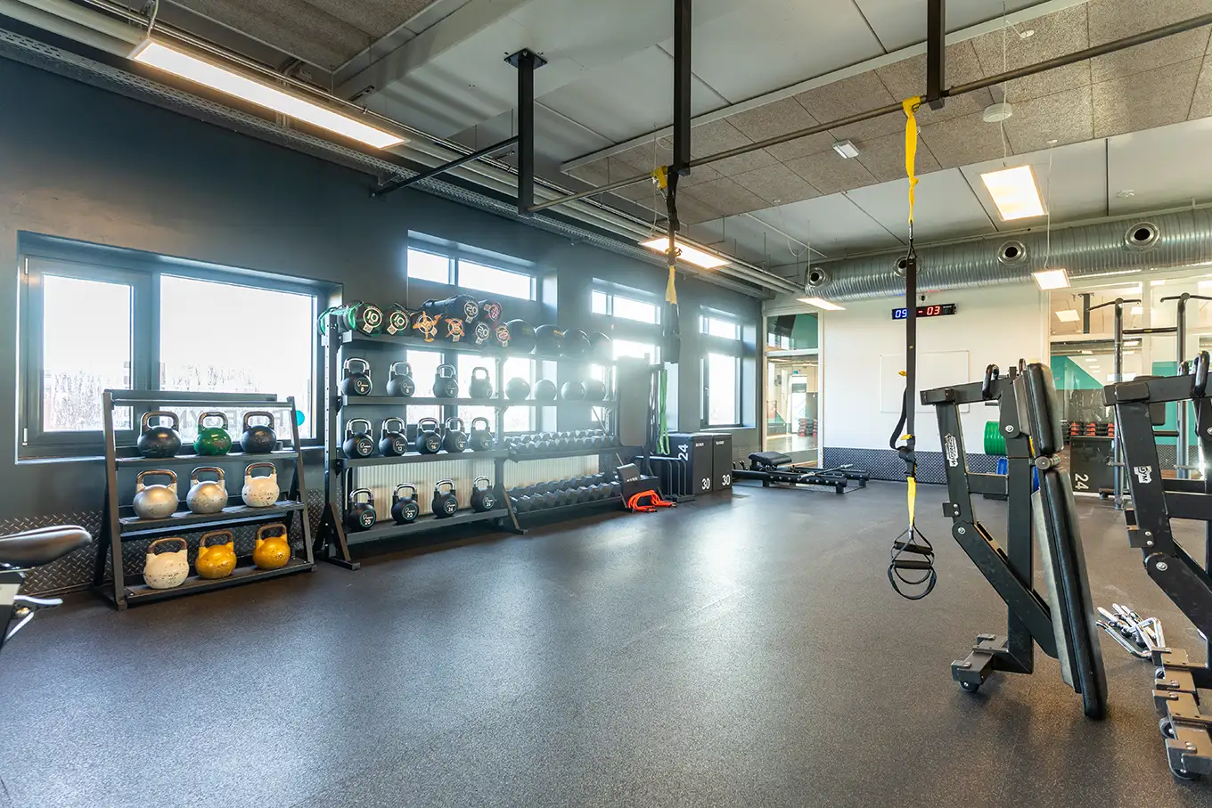 Vi har god plads til vores medlemmer. I vores app kan du se, hvornår der er flest og færrest mennesker i centret.