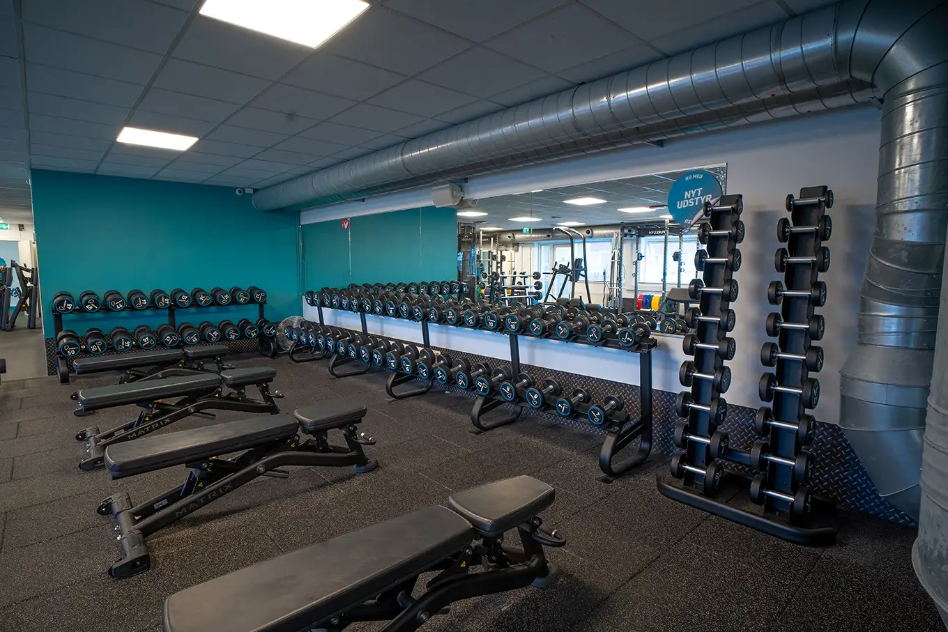- Nyt og forbedret frivægtsområde, inkl. nye platforme, squatracks og nye maskiner som Perfect Squat og Glutebuilder.