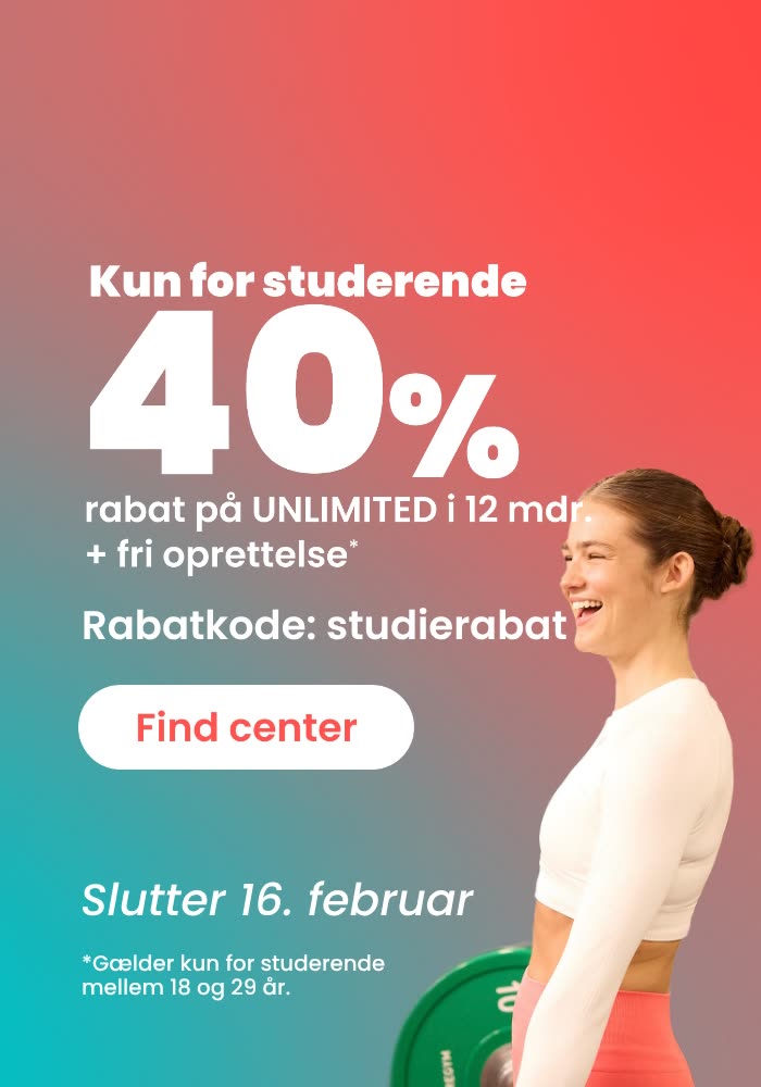 Brug koden STUDIERABAT og få 40% rabat på Unlimited de næste 12 måneder + oprettelse til 0 kr.